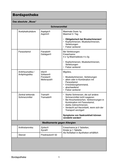 Medikamentenempfehlung für die Bordapotheke